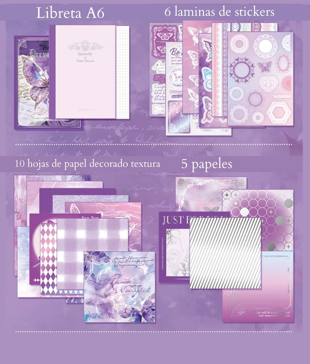 Este hermoso pack trae 140 piezas de temática de mariposas moradas en estilo de fantasía