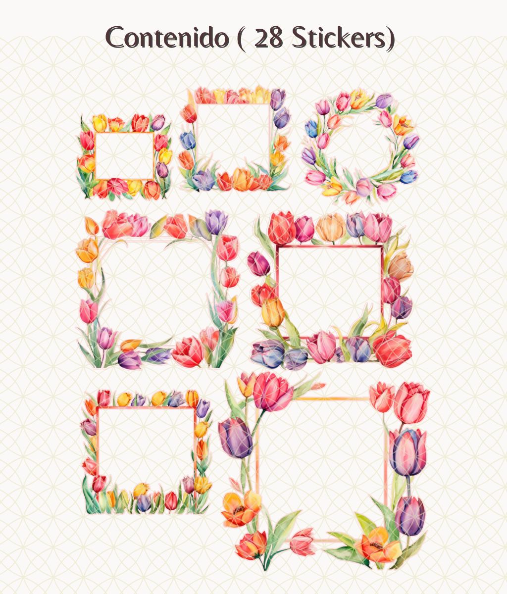 Estos hermosos stickers de tulipanes son perfectos para complementar todos tus proyectos de scrapbook, journaling, diarios creativos, collage, etc.